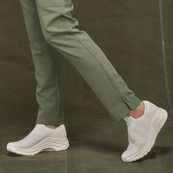 Closeout. You'll have no problem stepping lively in Dansko's Pep Knit sneakers, crafted from lightweight, breathable recycled knit fabric and cushioned with an arch-supporting EVA footbed.