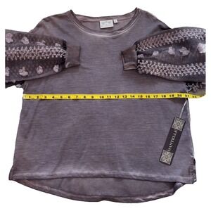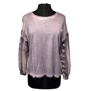 NEW Dantelle Loop Terry Side Slit Sweatshirt Sz M Purple Sheer Mesh Long Sleeve