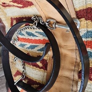 NEW!!! Dark Brown Leather Horse Lead 68"with 27" Silver Plate Stud Chain.