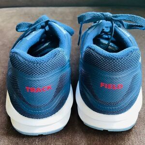 the uppers are dark navy and the midsoles are white and the bottoms are ice light blue clear rubber mixed in with white.