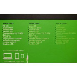 EFFORTLESS CONTROL FEAUTURES: 2.1m high tensile strength, anti-winding braided cable with rotary volume controller & mute button for the microphone. The 3.5+ USB connection ONLY uses for lighting up Cool LED lights with Frequency response: 75-16,000Hz Microphone: Omni-Directional - Connectivity technology: Wired