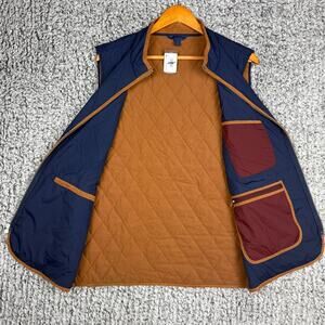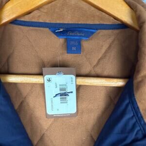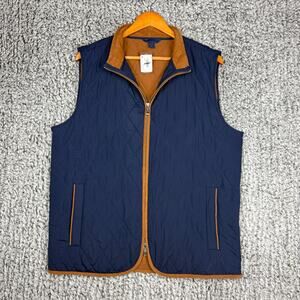 NEW David Donahue Quilted Golf Vest Size Medium Navy with Brown Suede Like Trim
