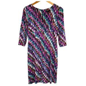 NEW David Meister Multicolor Abstract Print Rayon Jersey V-Neck Dress Size 10