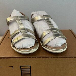 NEW David Tate Women's 9.5 Wide Gold Metallic Leather Strappy Open Toe Sandals