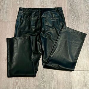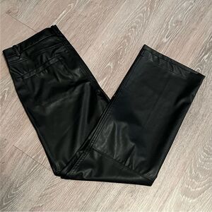 NWOT David Lerner Black Faux Vegan Leather High Rise Button Fly Crop Straight Flare Pant