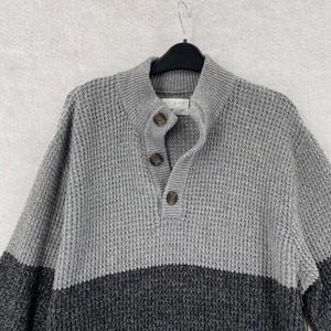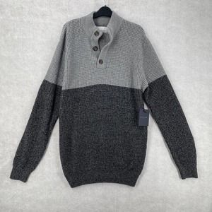 NEW Day & Age Henley Knit Sweater Mens LARGE Pullover Fisherman Waffle Knit Gray