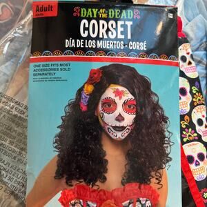 NEW Day of the Dead Skulls Halloween Cosplay Corset Red Black Med