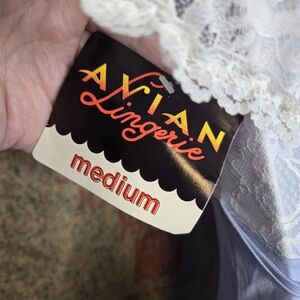 NWT Avian Lingerie deadstock pale ice blue lacy coquette long sheer nightgown dress. Vintage size medium, please refer to measurements. Made in the USA.