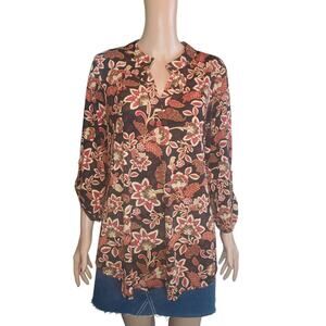 NEW Dear Scarlett Size L Woman's Lizzy Relaxed Flowy High Low Blouse Dark Floral