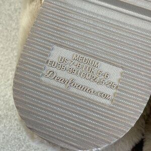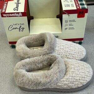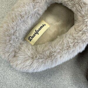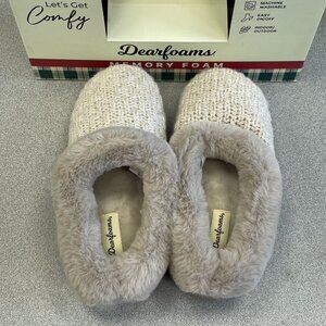 NEW Dearfoams Memory Foam Slippers Women's M 7-8 Beige Knit Faux Fur Trim
