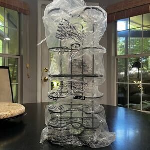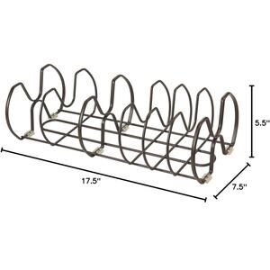 New in packaging Deco Brothers Pan and Lid Organizer Tiered Shelf in Bronze Metal Efficiently Stores Up to 6 Pans, Lids or Cutting Boards and Saves Valuable Cabinet and Countertop Space. This Free-Standing Portable Tiered Organizer Offers Horizontal Storage Options to Best Fit Your Space.