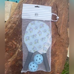 Experience endless fun with this outdoor game set, featuring 2 floral print paddles, 2 pickle balls and a bonus carrying bag. Perfect for backyard gatherings or park outings, this set ensures hours of entertainment. Its durable construction makes it ideal for all weather conditions.