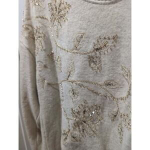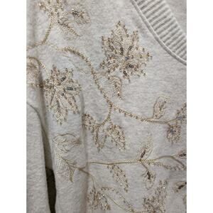 NEW! Democracy V-Neck Knot Hem Long-Sleeve Top Cream Size S Beaded Sequins