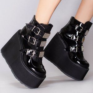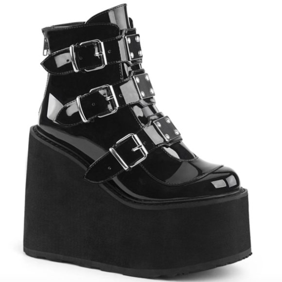 NEW Demonia - SWING 105 Dark Resistance Patent Black Platform Boots