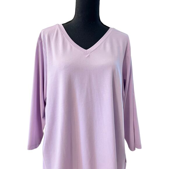 D&Co., V-Neck, Top. 3/4 Sleeves makes it perfect to wear year round. Stretch for comfort. Women's Plus Size 1X. Lilac Purple.