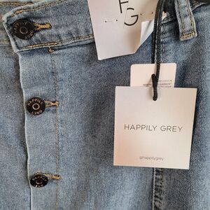 NEW Denim Maxi Skirt Sz 11 29 Button Front Happily Grey Boho Stretch Modest