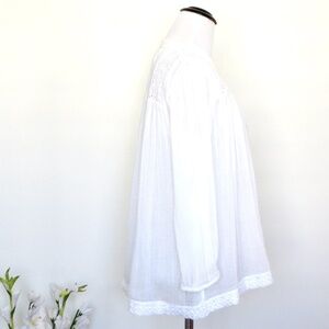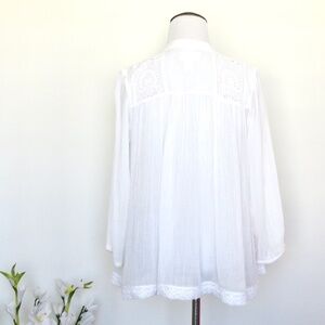 Description: This is a genuine Denim & Supply Blouse. No rips, tears, marks, stains, flaws or defects. NO damages. The shirt features V-neckline with button closure, embroidery with eyelet detail and lace hem, 3/4 length sleeves with elastic cuffs, breathable lightweight cotton with polyester fabric, machine washable, imported. Retail $89