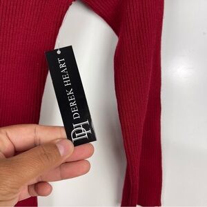 NEW Derek Heart Ribbed Long Sleeve Knit Sweater Dress Red Women's Size Medium