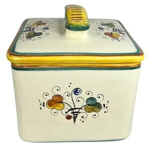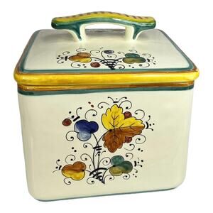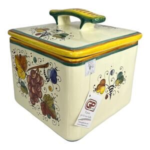 NEW Deruta BISCOTTI COOKIE JAR Biscuit Canister & Lid 8" Square Italian Pottery