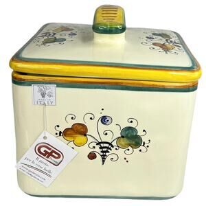 NEW Deruta BISCOTTI COOKIE JAR Biscuit Canister & Lid 8" Square Italian Pottery - NEW With Tags!