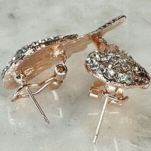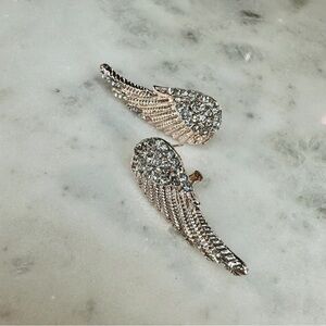 NEW Designer Rose Gold-tone Large Angel Wing Clear Crystal Studded Earrings