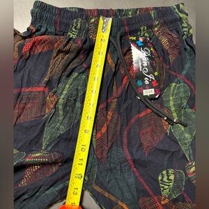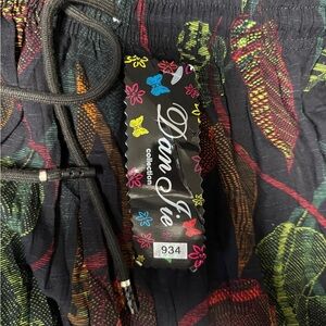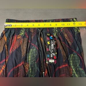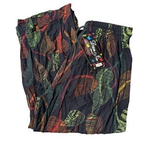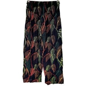 NEW Designer Wardrobe Wide Taper Crop Draper Pant Black Leaf Print Lagenlook