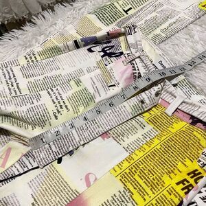 SO cute and NEW! Fitted trousers that flare from the knee with central seams and stretch fabric with a newspaper print. High waist. Decorative pockets. Button and zip closure.