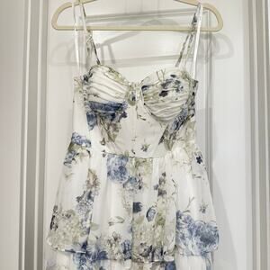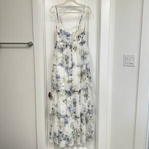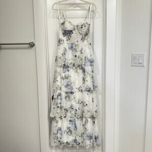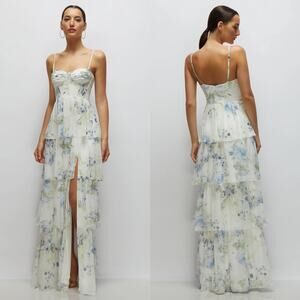 NEW Dessy Collection Bustier Ruffle Evening Gown in Bleu Garden Print Size 2