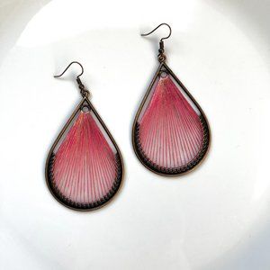 Keywords: bohemian, sunrise, sunset, charm, tassel, dangle drop, statement, summer, bright, long, fabric, hoop, circle, round, thread