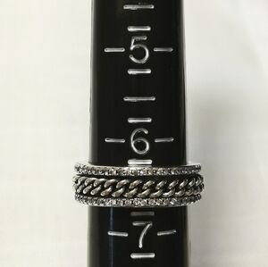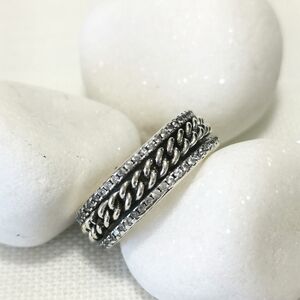 sterling silver band ring with chain and cz