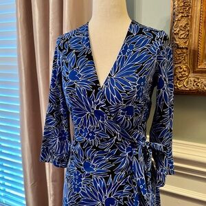 NEW Diane von Furstenberg DVF New Julian Two Blue Black Floral Wrap Dress Size 8