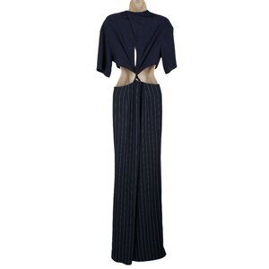 NEW Dion Lee Pinstripe Jumpsuit Navy Blue White Strips Side Cutouts