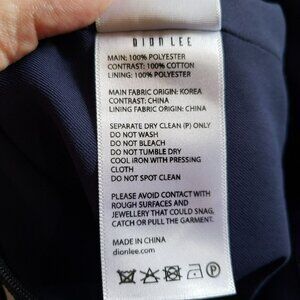 Fabric: Mid-weight, low-stretch suiting Cutout jersey bodice with deep V neckline and tie at front Short sleeves Hook-and-eye and hidden zip at side On-seam hip pockets Shell: 100% polyester Trim: 100% polyester Lining: 100% polyester. New with tags!
