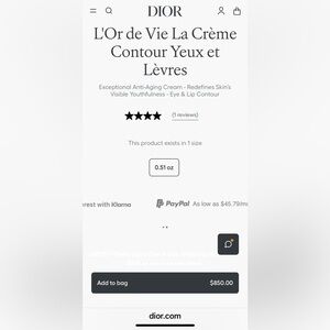 You will receive 6 of NEW in box Dior Exceptional Anti-Aging Cream - Redefines Skin’s Visible Youthfulness - Eye & Lip Contour 3ML total 18ML more than a full size (0.51oz./15ML)$1020 value.