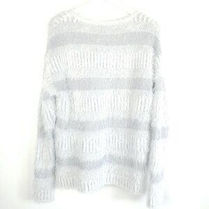NEW Directions S Eyelash Fringe Knit sweater Gray Stripes Soft & Cozy