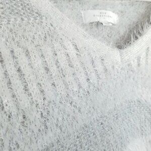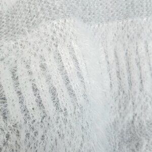 New Directions S Eyelash Fringe Knit sweater Gray White V-neck Long Sleeve