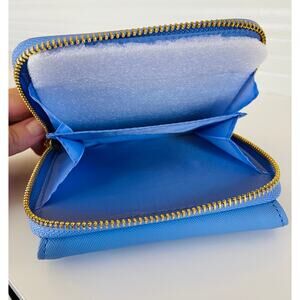 This wallet no longer has its tags, but it has never been used: the plastic protective covering is still on its golden seal on the main closure, and there is also a protective plastic layer on the golden zipper as well.