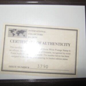 NEW Disney Grenada $5 Stamps Classic Fairy Tales - Six with Certificates of Authenticity. These are Sleeping Beauty, Cinderella, Peter Pan, Alice in Wonderland, Pinochio, and Snow White.
