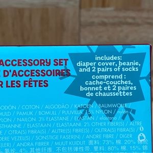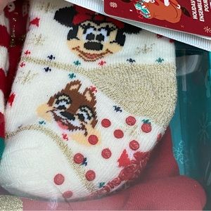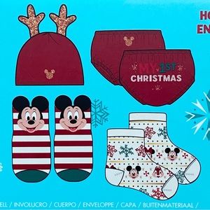 NEW Disney Holiday Accessory Set Baby 0-6 Months Diaper Cover Beanie & 2 pairs of Socks. New in package. Perfect gift for Christmas. See photos for details. You will get exactly as pictured!