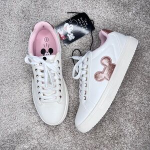 NEW Disney Mickey Mouse White Sneakers Rose Gold 9