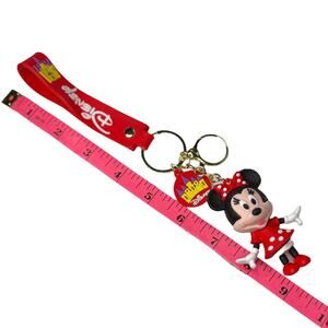 Details: This Minnie Mouse Key Ring Features A 3.75" Wrist Strap, 1.75" Minnie Mouse Figurine, Key Ring, Key Fob Clip and Charm For Various Attachment Options!