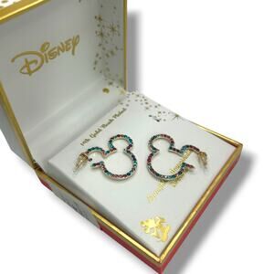 NEW Disney Multi Color Crystal Mickey Mouse Earrings 14K Gold Plated Pink Blue