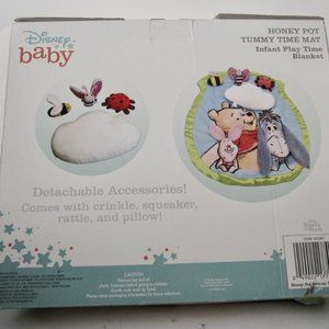 Disney Winnie the Pooh "Honey Pot Tummy Time Mat" infant / baby play time blanket with detachable accessories -- a pillow, squeaker, crinkle and rattle.