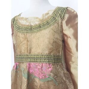 Maleficent starring Angelina Jolie as the eponymous Disney Villainess character, the film is a live-action re-imagining of Walt Disney's 1959 animated film Sleeping Beauty and portrays the story from the perspective of the antagonist, Maleficent. This beautiful coronation dress has glitter embellishments and ornate trims. New, without tags.