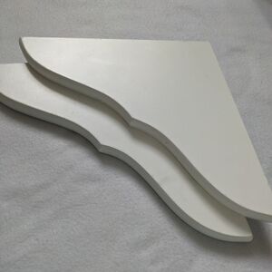 Solid Paulownia Wood and Metal Brackets. MEASUREMENTS: Shelf A: 11.4 x 6 x 0.6 inches, Shelf B: 14.2 x 6 x 0.6 inches, Shelf C: 16.5 x 6 x 0.6 inches. 3.7 lbs.