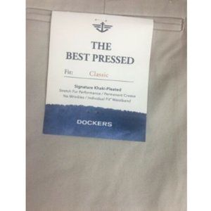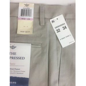 NEW Dockers Pants Beige Waist 32” L 34” Pleated Khakis Stretch Men’s pants. NWT