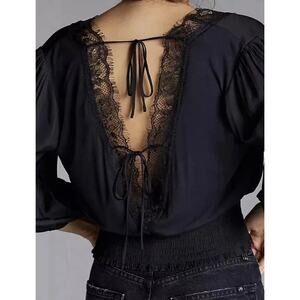 With that in mind, slip it on when a little romancing is in the cards. Pullover styling, polyester, double back self ties to keep it in place. Smocked hem, elastic cuff 3/4 length sleeves. Soft and silky.