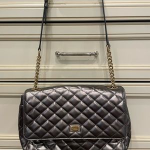 New Dolce and Gabanna gray/metallic quilted leather shoulder satchel. Store sample with a few slight scratches in various places hence the discounted price.
