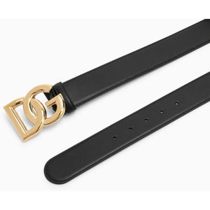 Black calfskin leather logo-buckle leather belt from DOLCE & GABBANA featuring punched holes, adjustable fit and D&G logo buckle. 40mm/1.6 in width