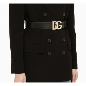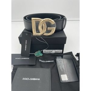 NEW Dolce & Gabbana D&G Logo Black Gold 40mm Leather Belt 36 90 NWT!